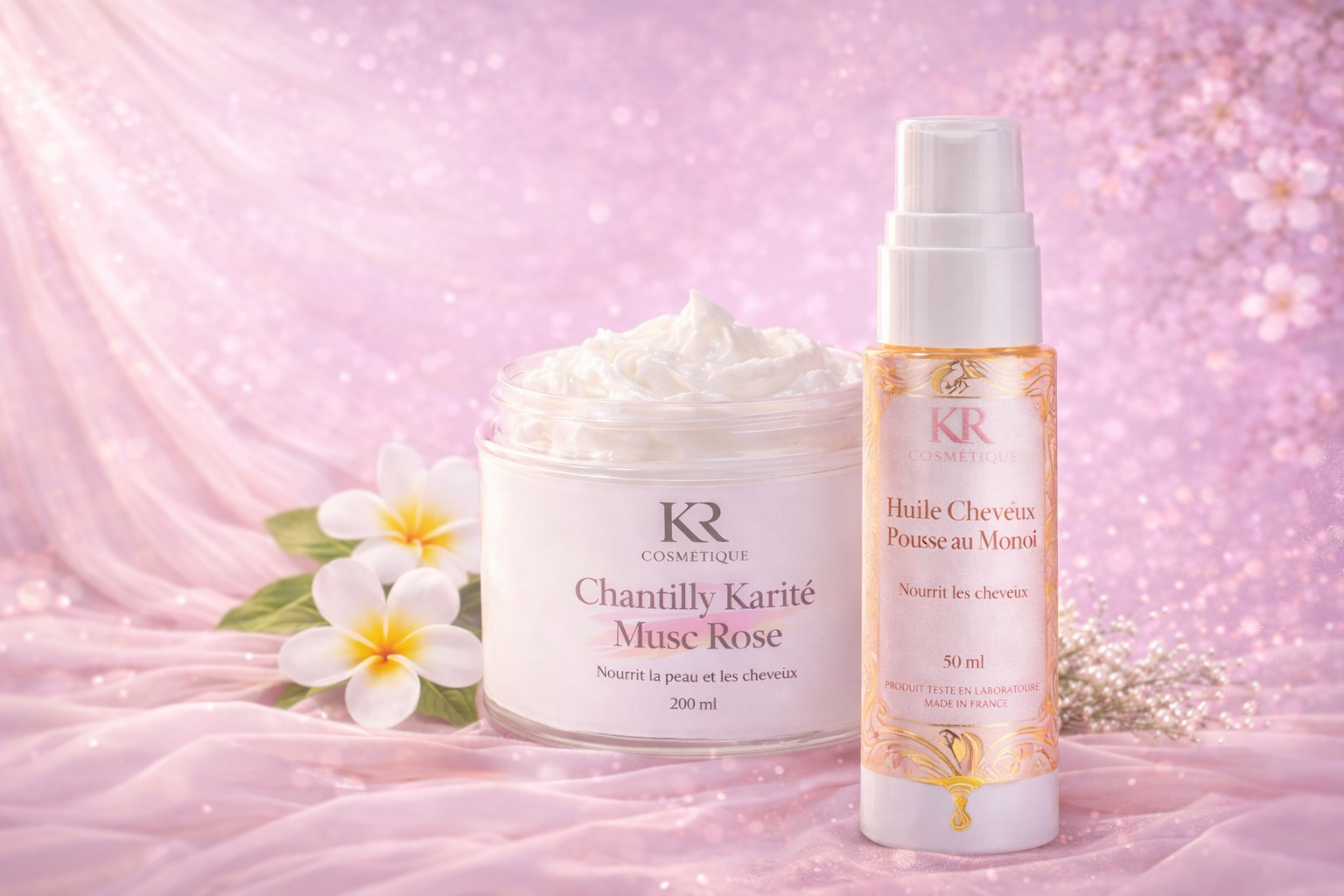 KR Cosmétique est née d’une volonté simple : proposer des soins efficaces, sensoriels et respectueux, pensés pour nourrir la peau et les cheveux en douceur.
